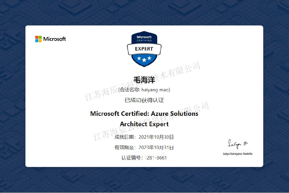 江蘇海辰云科信息技術有限公司是一家瞪羚企業、科技型中小企業、高新技術企業,AAA級重合同守信用企業、企業通過ISO9001標準化管理體系認證,ITSS信息技術服務標準。江蘇海辰堅持為客戶提供數字化轉型、云計算、信息安全、IT運營、大數據、IT資管及合規等領域的解決方案,致力于為用戶提供一站式IT信息技術服務!多年的行業經驗,在銷售、培訓和技術服務工作中,公司與Microsoft,Oracle,Adobe等國際、國內知名廠家建立了密切的合作關系,使得我們能為用戶提供從基礎架構,到行業應用的IT解決方案;提供從軟硬件采購,到后期技術支持;以及提供從公有云到私有云以及混合云的云服務和解決方案。成立至